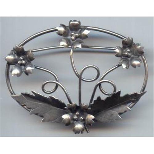 <tr><td>Title:Sterling Circle Pin with 4 Flowers</td></tr>