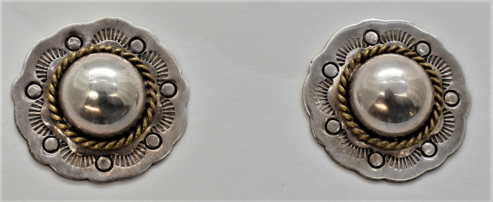 Sterling Concho Pierced Post Earrings, measure 1''D, total gram wt. of 11.88