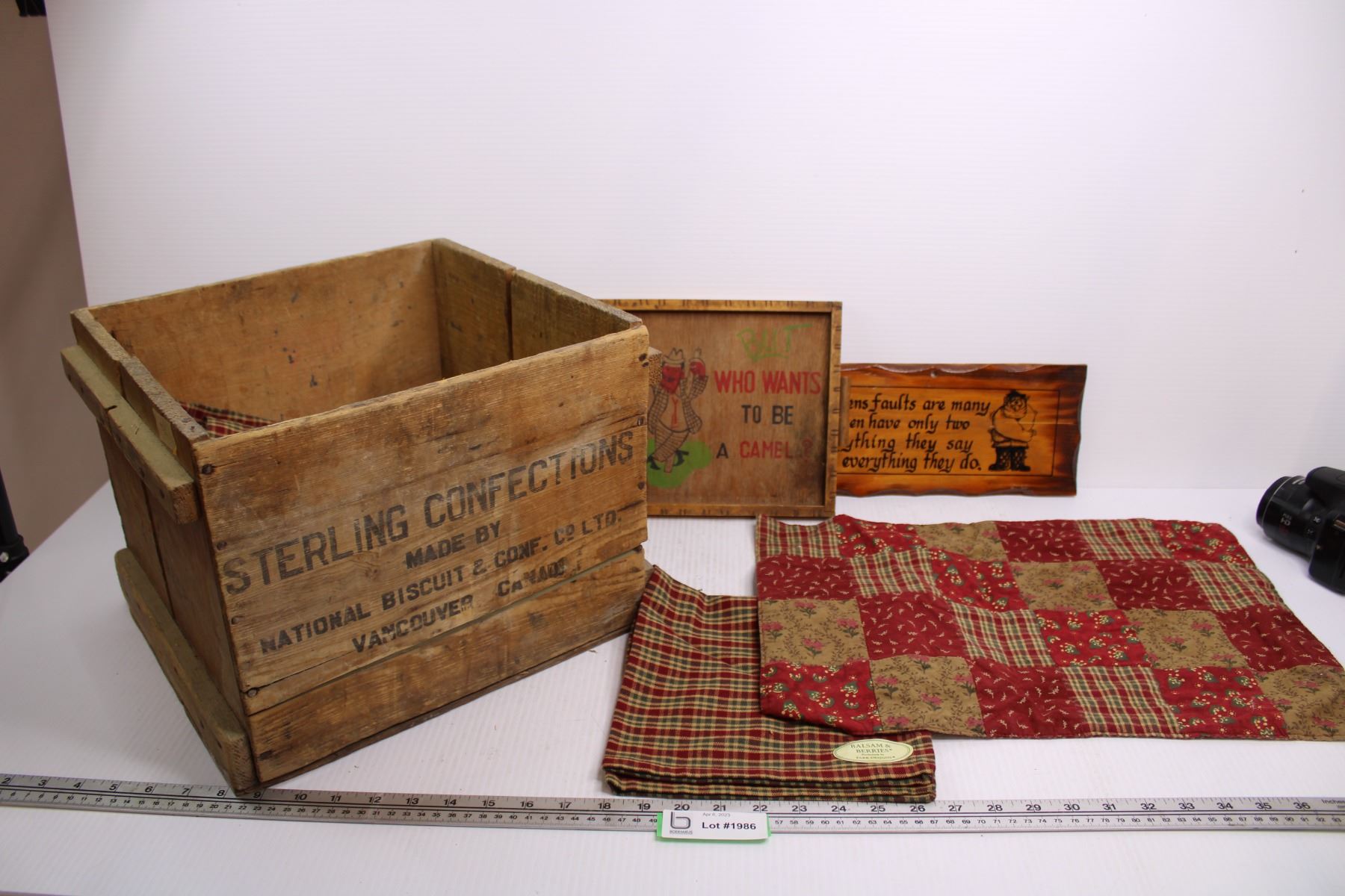 Sterling Confections Crate + (2) Novelty Signs and Set of Placemats/Napkins