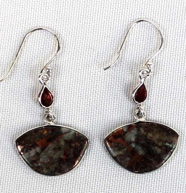 Sterling Copper Agate and Garnet Earrings, measure 1.5''L which includes the wire x .75''W