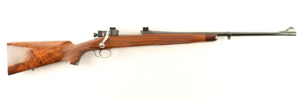 Beautifully crafted bolt action sporting rifle chambered in .30-06 Springfield and built off a Remington 03-A3 action of 1943 vintage. The custom work was done by master gunsmith Sterling Davenport, who has since retired. Features a blued finish, 22" unmarked barrel, ramped blade front sight, Lyman side mounted sight base, scope bases, polished bolt, internal box magazine with cut off, safety switch on bolt, and serrated trigger. Stocked in premium grade marbled walnut which features classically inspired swept right hand cheekpiece, ebony forend tip, and cleanly cut borderless point pattern checkering that wraps over top of grip. Other fine touches are inlet sling eyes at the butt, skeleton steel grip cap with checkered center, and the trapdoor buttplate with three round ammo compartment. Rifle exhibits approximately 97% of it's blued finish with few small losses on the barrel. Action is crisp, bore is pristine and wood stock is fine with a 2.5" scratch on the right side. This is a great opportunity to own a beautiful rifle produced by a sought after gunsmith who's work will certainly only appreciate in value. Condition is excellent ***C&R Firearm*** ***Modern Firearm***