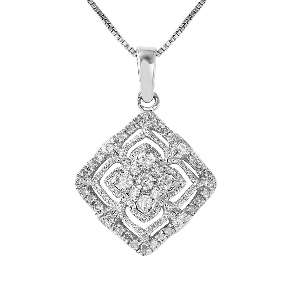 One electronically tested sterling Silver ladies cast diamond pendant & chain 18.0" long, light square box link with a spring ring clasp with a bright polish finish. Pendant measures 23.00.mm x 16.0mm. Condition is new. Containing: Thirty-Nine prong set round brilliant cut diamonds, measuring 2.50 - 1.00 x 1.05mm (depth est.) approximate total weight of 39 Stones = 0.25ct. Clarity: I-1 to I-2. Color: F, Cut is Fair. Approximate Total Weight of Diamonds 0.25ct. Total Weight of Pendant & Chain 2.52gm. The descriptions listed should not be construed as an appraisal. The detail is provided as a guideline for color, clarity, weights and measurements to the best of our ability. We welcome inspections. WE SHIP WORLDWIDE!