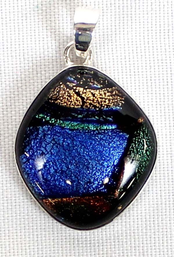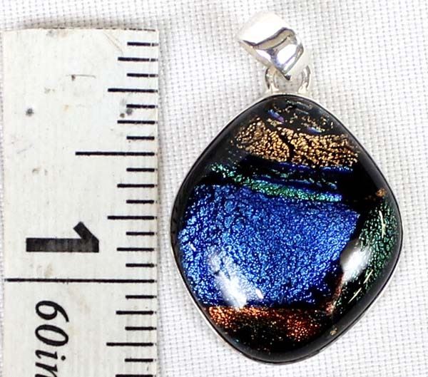 Sterling Dichroic Glass Pendant, measures 1.5''L and is stamped .925, gorgeous colors