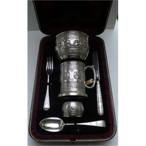 cup, bowl, knife, fork, and even napkin ring. Doesn't get any