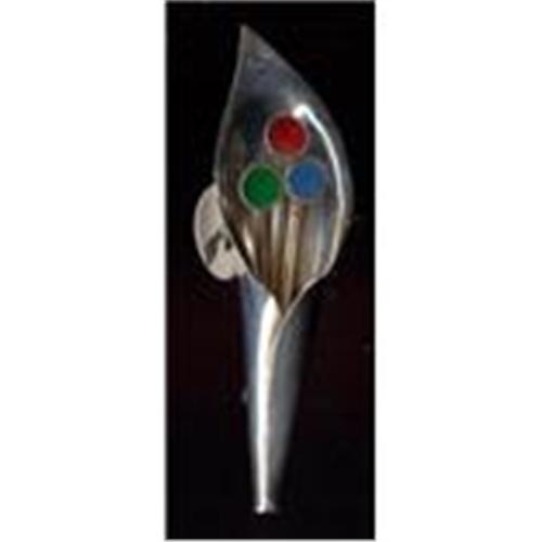 This modern sterling vase style pin sports three enameled flowers in red, blue and green. The pin measures 2 1/2 inches tall and is in excellent condition with a good locking safety clasp on the back. It is in excellent condition and is marked, MEXICO, 925, TC-205.