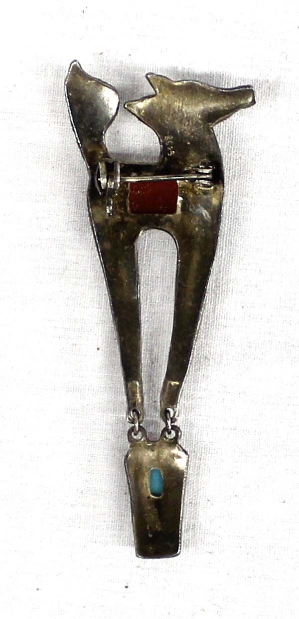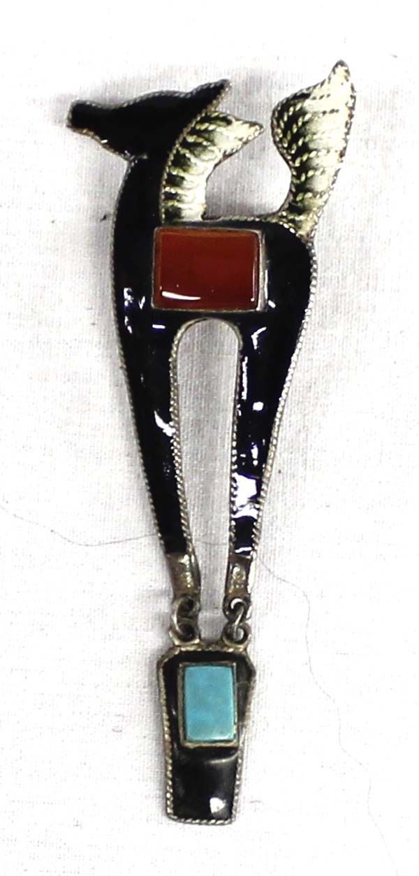 Sterling, Enamel, Turquoise, Carnelian Horse Pin, marked .925, measures .75'' x 2.25''