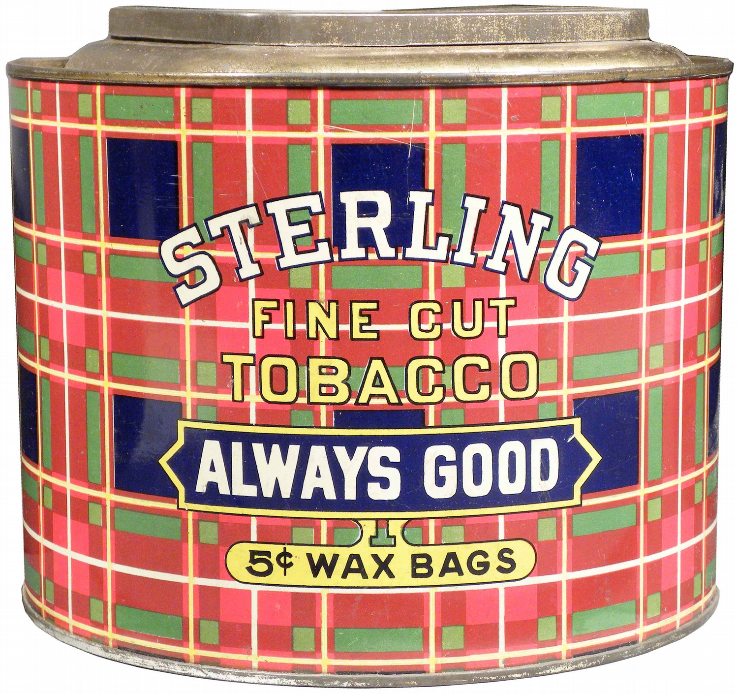 Sterling Fine Cut Tobacco Store Bin. Near mint condition. 8 inch diameter X 7 inches tall.