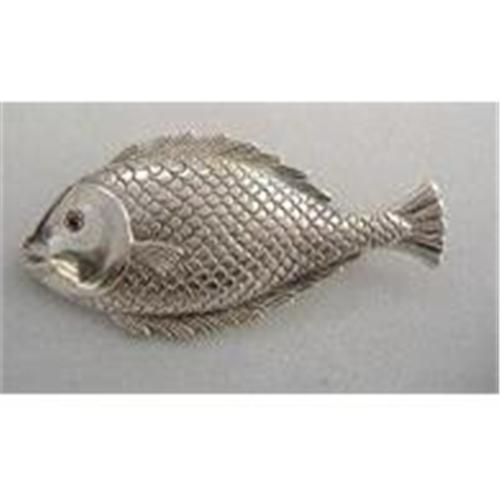 This is an interesting find in Scotland. This hand crafted sterling fish pin has great detail in the scales, fins and tail. The eyes are genuine ruby stones.