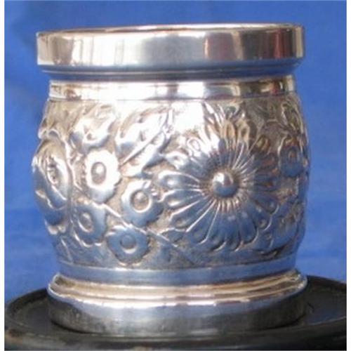 Beautiful antique Gorham sterling silver repousse napkin ring.The napkin ring is ringed in repousse flowers and has the initials M S on the front of the ring. <p>The napkin ring is marked inside with the Gorham mark from 1882. Sorry we could not get a photo.<p> The napkin ring is in good condition. There is a small ding in between the 2 initials. No cracks or repairs found.<p>Please see our inventory for more sterling silver and antiques of all types.