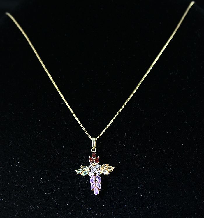 Sterling Gold Multistone Crucifix-Unique **|**|** Sterling Gold Multistone Crucifix-Unique ; MSRP: $100