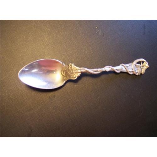 A wonderful Halloween spoon by Daniel Low.Has the witch on the very end of the handle with her broom,also has a snake,crescent moon and a big cat on the handle.Marked Sterling & Daniel Low.Measures 4 1/4" long.