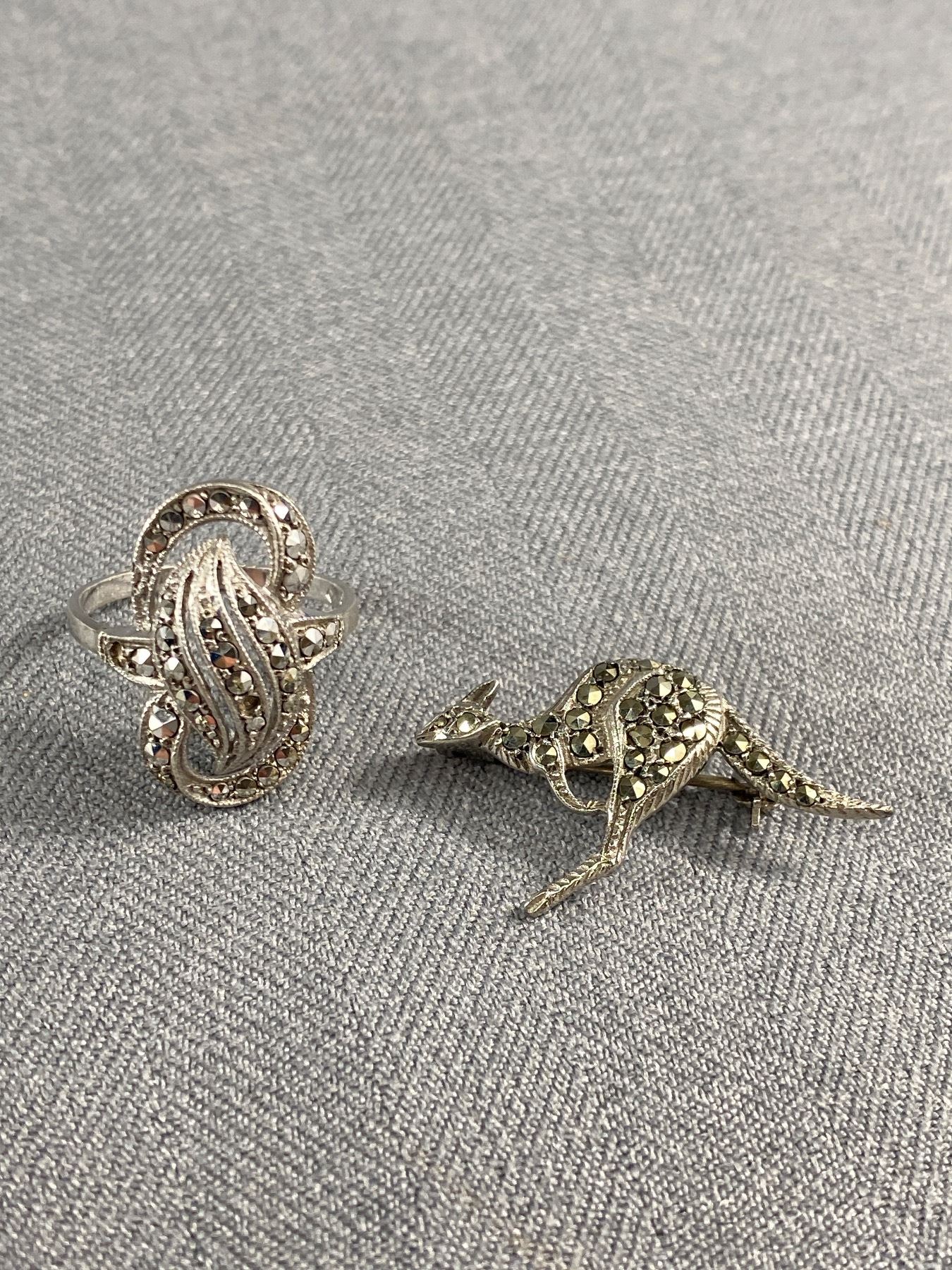 Sterling Kangaroo Brooch 3.28 Grams & Sterling Ring 5.53 Grams
