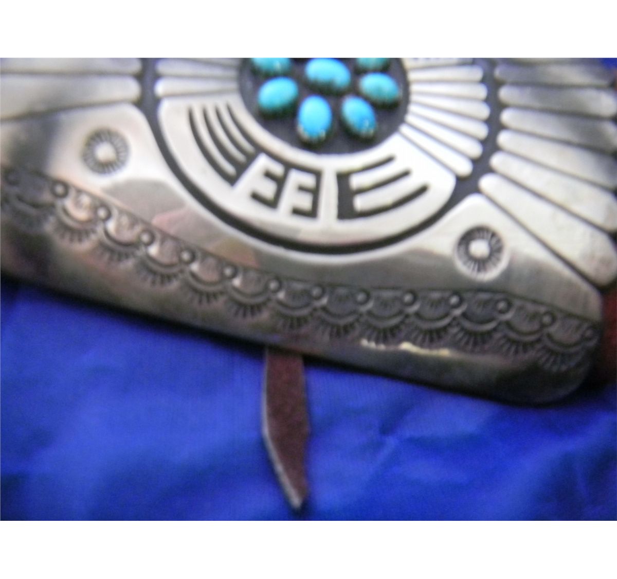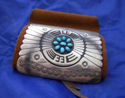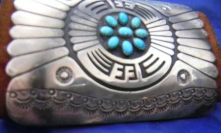 Sterling Silver Ketoh. Beautiful Navajo Ketone or Bow Guard. Turquoise stones, Leather backing to protect the wrist from bow stings. Circa 1940. Shipping $12.50