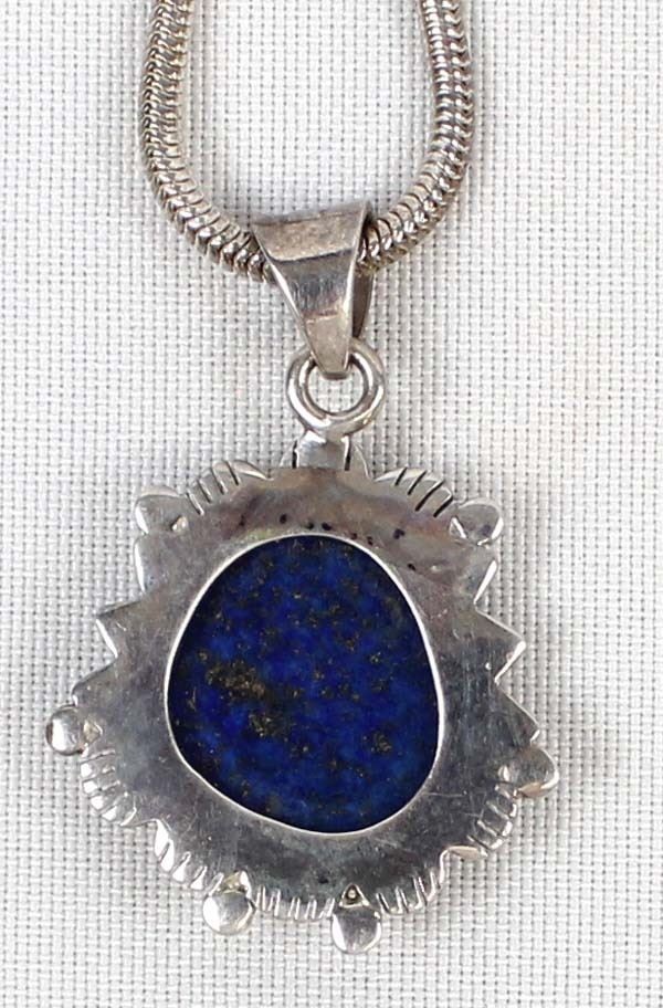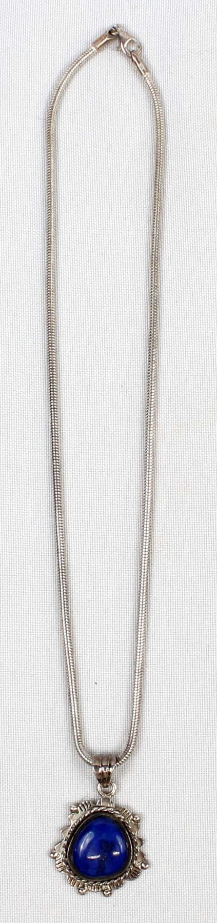 Sterling Lapis Pendant Necklace, pendant measures 1.5'' which includes the bale, sterling silver serpentine chain is stamped .925 and measures 16''L end to end, 22.7 gtw