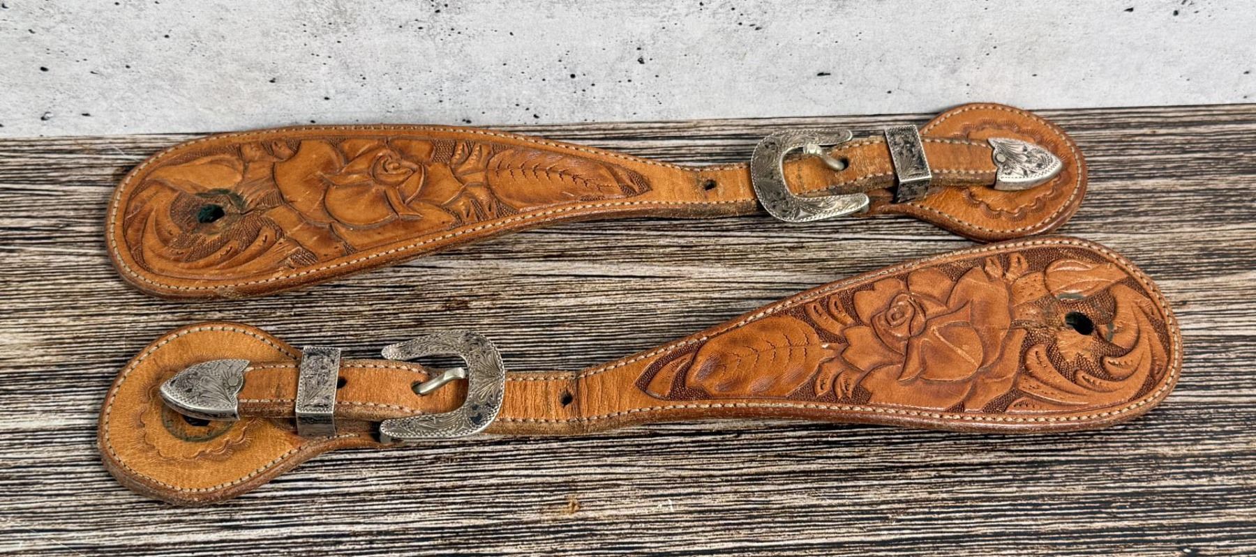 Cowboy Spur Straps. Nice set. Taxco Sterling Buckle and Tips.
