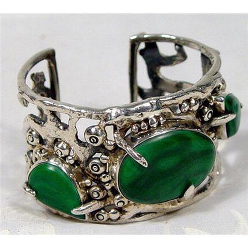 <tr><td>Title:Sterling Malachite Floral Vine Cuff~87g</td></tr>