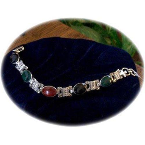<tr><td>Title:Sterling Marcasite & Gemstone Cab Bracelet</td></tr>