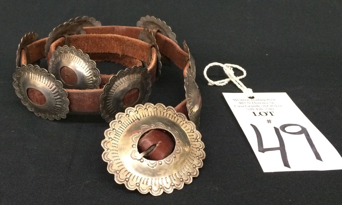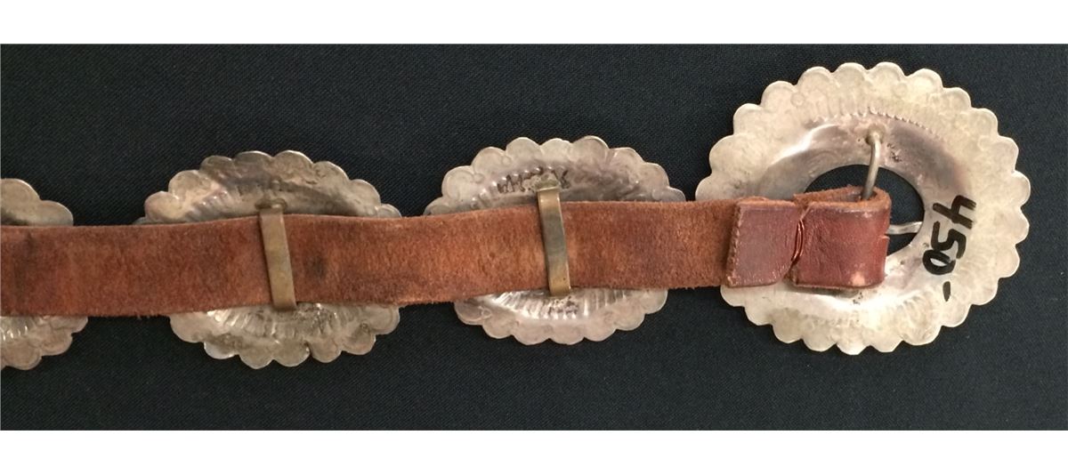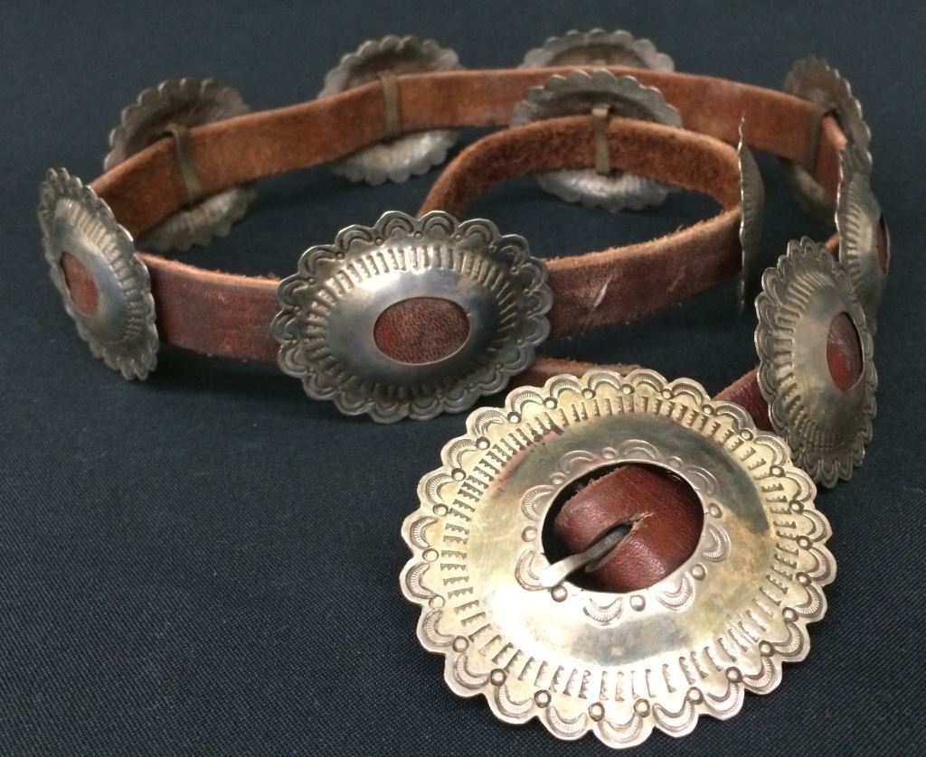 This sterling concho belt is 37” long and has a nice “old school” look to it. Tested as sterling silver, no makers hallmark as was common on Native American Indian jewelry made in the 1970s and prior.