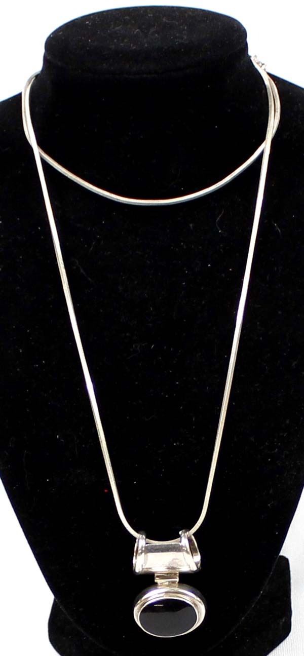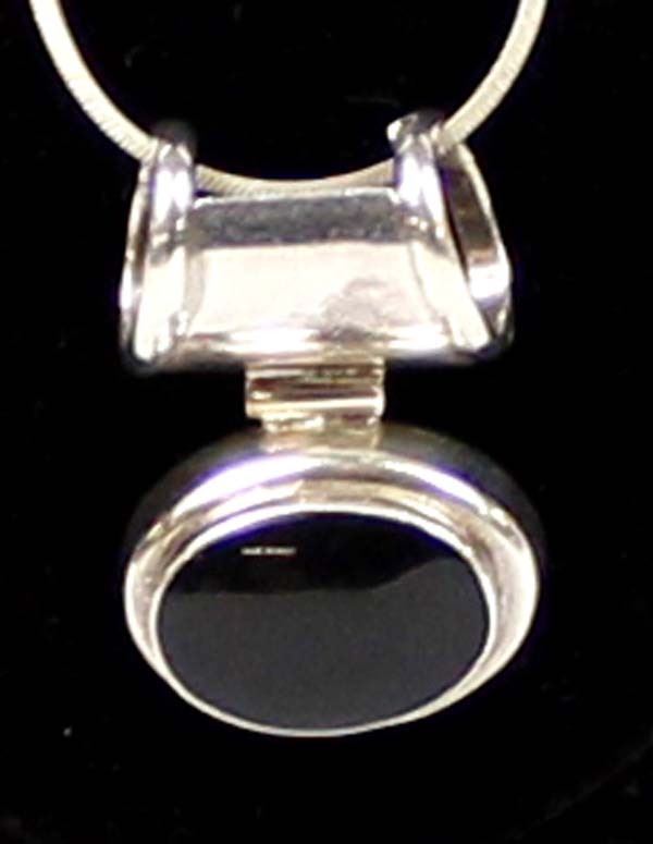 Sterling Onyx Pendant Necklace, pendant is stamped .925 and measures 1.5''L x 1''W, beautiful serpentine chain measures 28''L end to end and is stamped .925