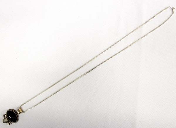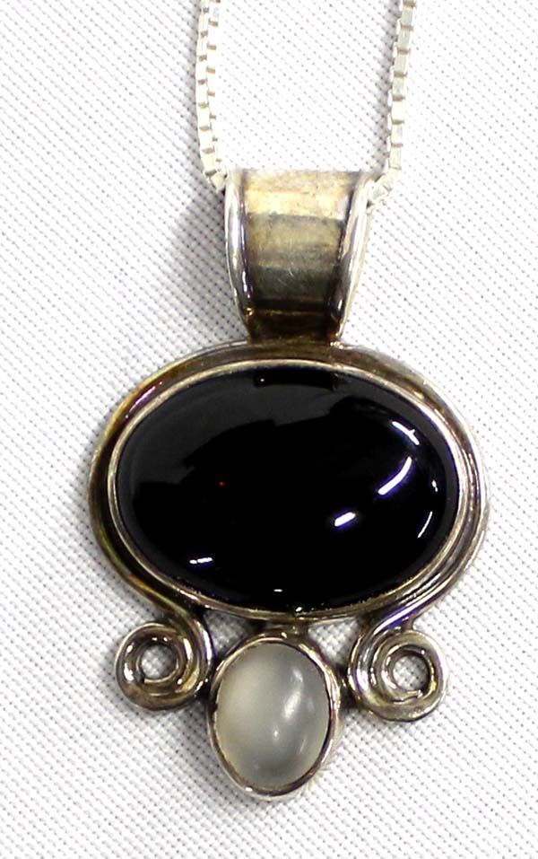 Sterling Onyx and Moonstone Pendant Necklace, beautiful sterling chain measures 29''L end to end, elegant pendant measures 1.75'' x 1''