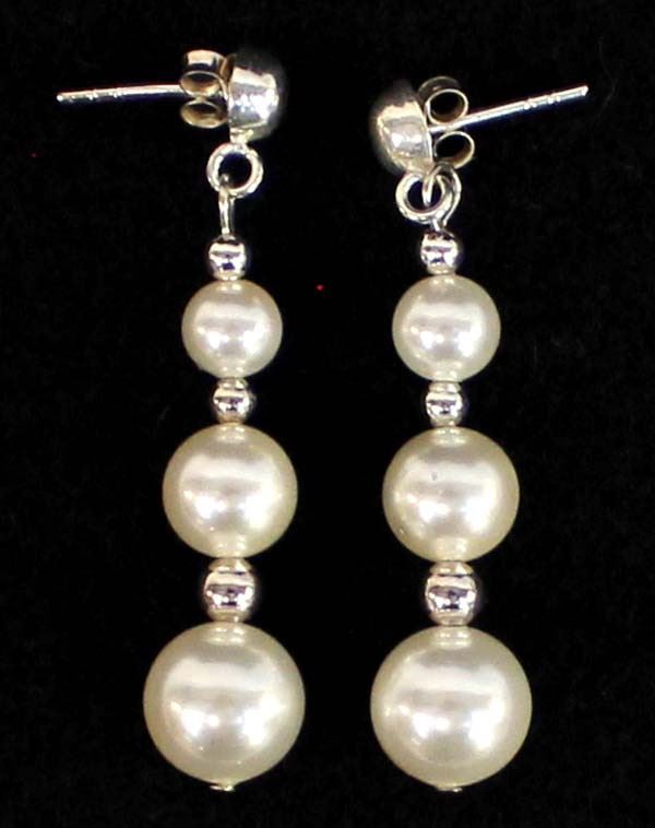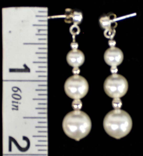 Sterling Pearl Dangle Earrings, measure 1.75''L, stamped .925