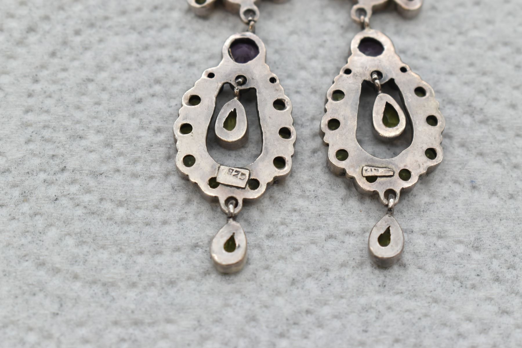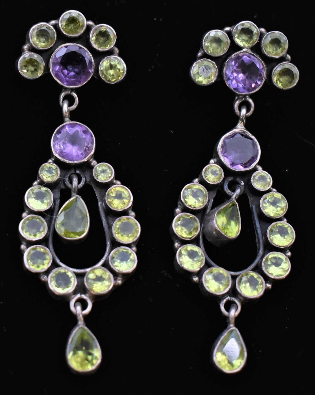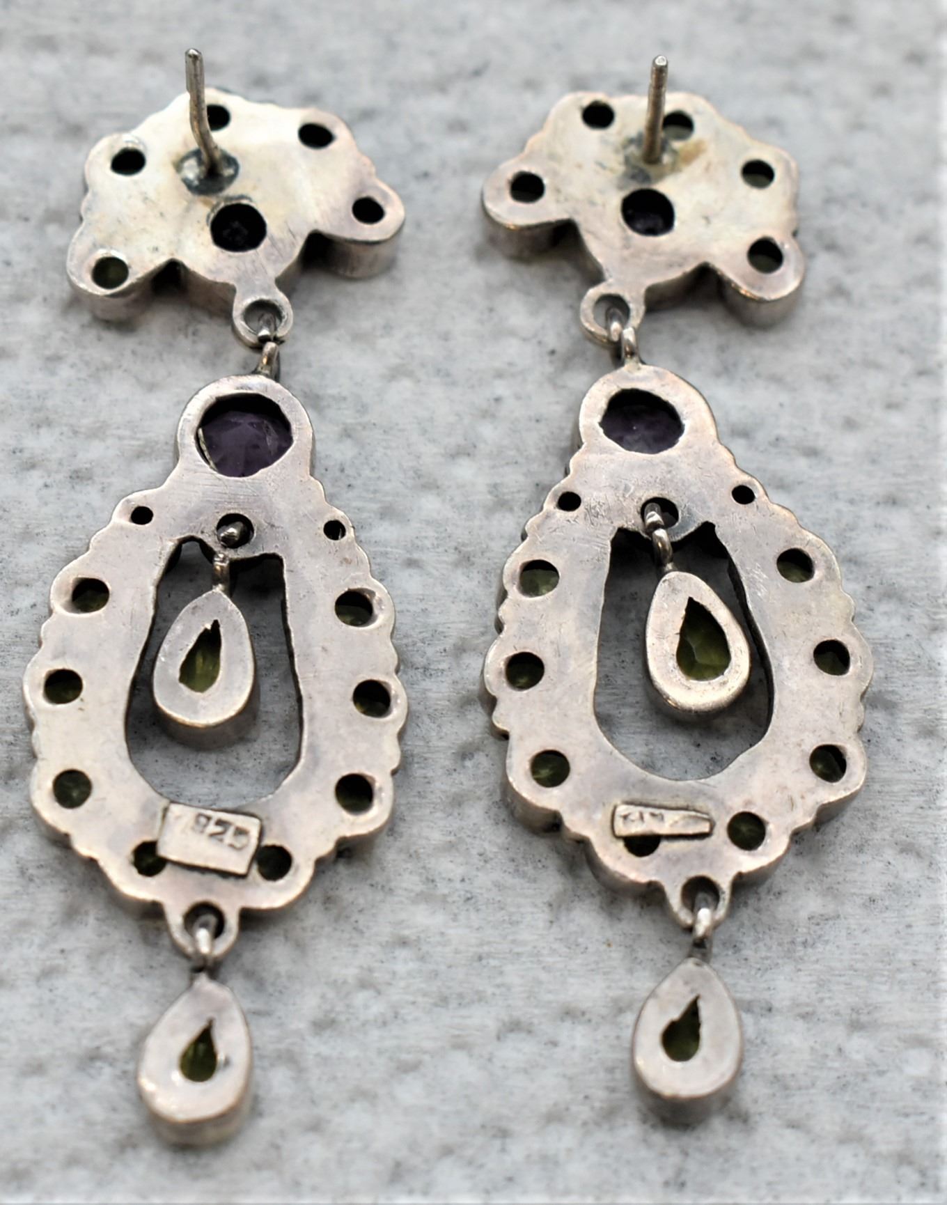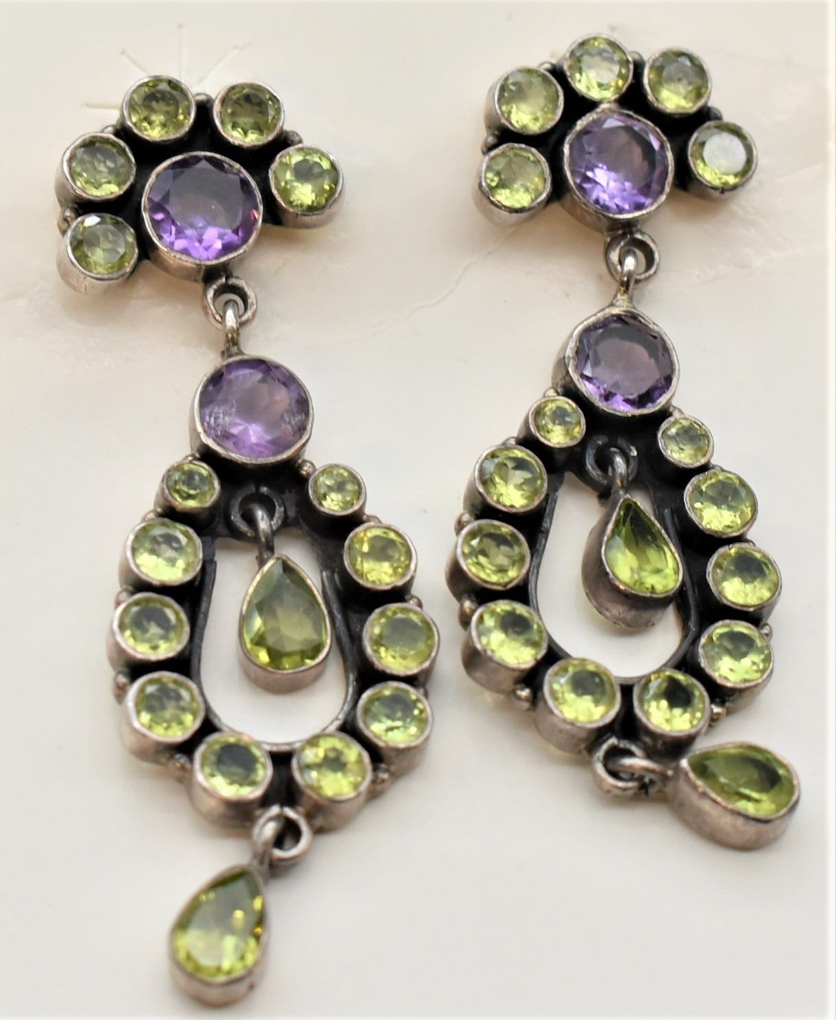 Sterling Peridot and Amethyst Earrings, stamped .925, measure 2 3/8''L x .75''W, total gram wt. of 18.3