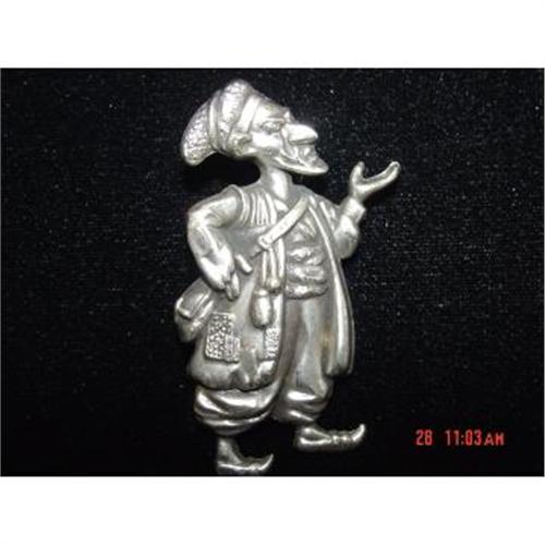 Here is a lovely little guy! I'm asking for help for this one?? What is this a pirate? Maybe some sort of cartoon character?? If anyone has any idea so I can update desciption? I believe this could be sterling, or maybe just silver. It is even possible it is pewter?? Its unsigned, but I have seen ones almost identical to this and they are signed Maureen and are sterling. Very detailed and in excellent condition