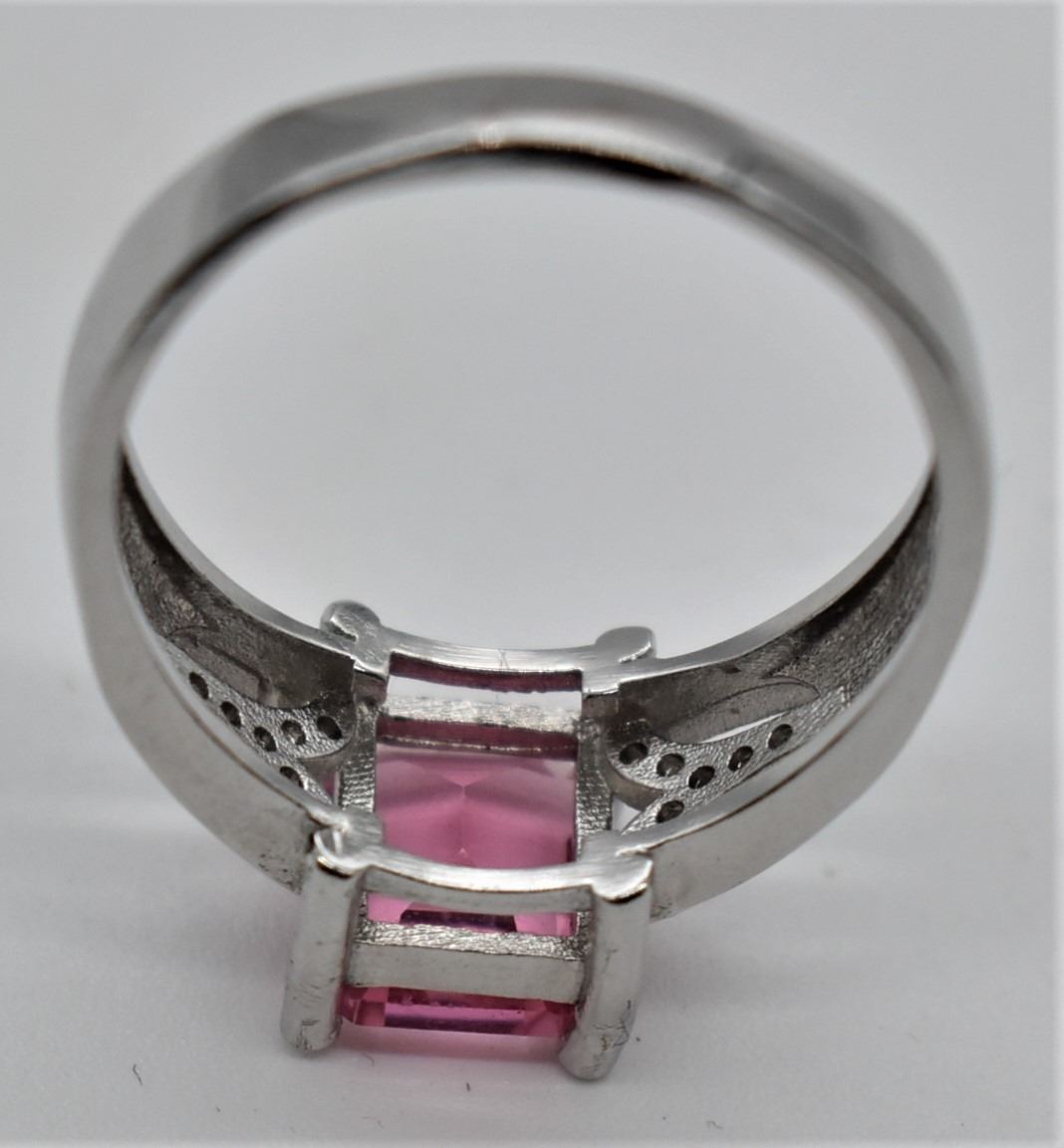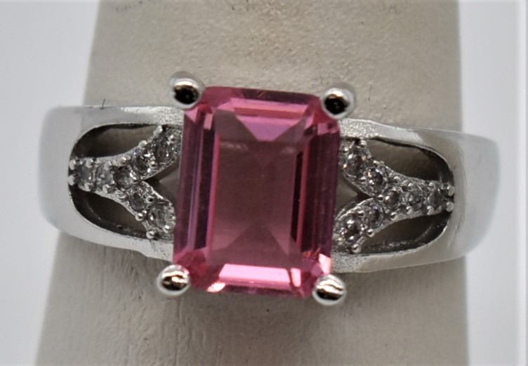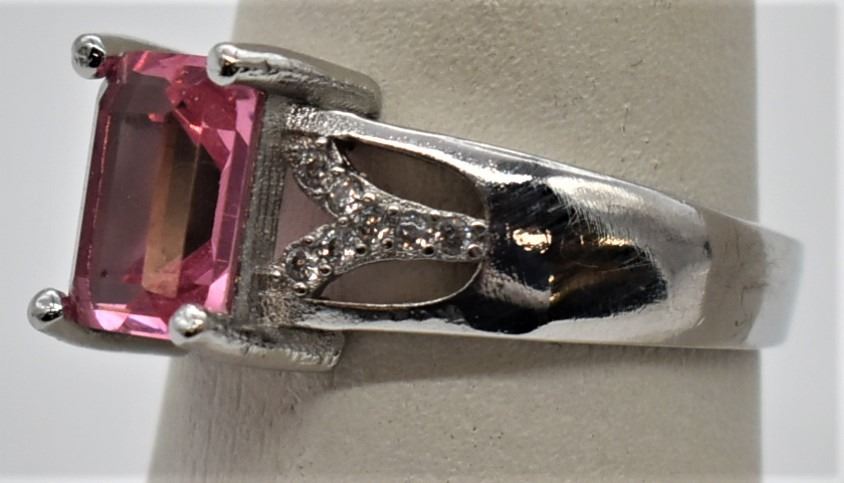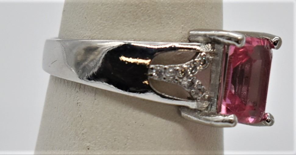 Sterling Pink Tourmaline and Diamond Chip Ring, size 9.25, measures 3/8'', stamped .925