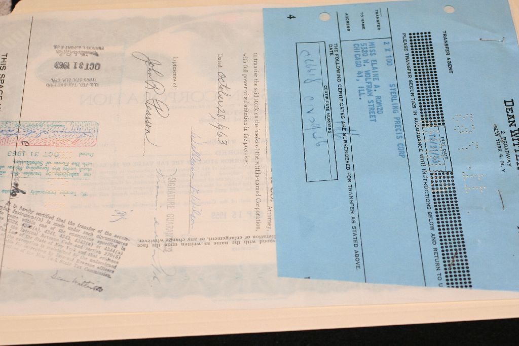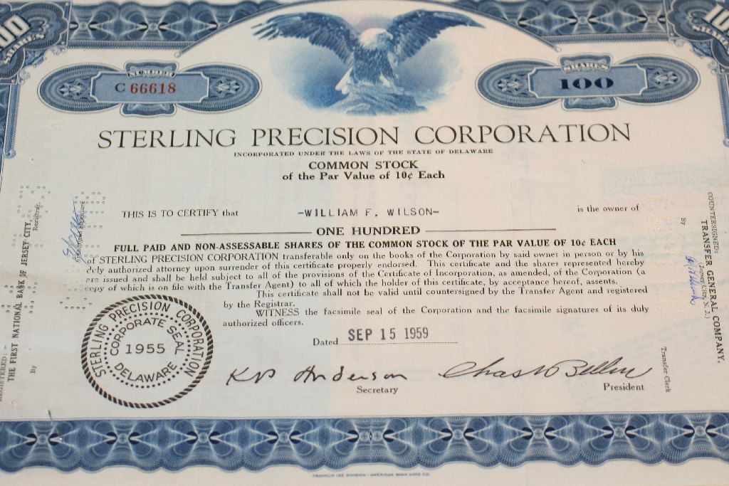 Sterling Precision Corp. Stock Certificate Dated 1959