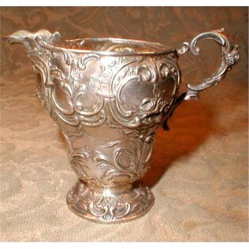 <tr><td>Title:Sterling REPOUSSE Creamer PITCHER Jug - ANTIQUE</td></tr>