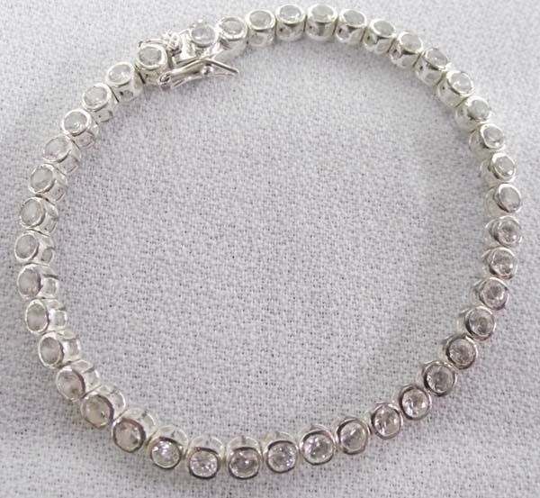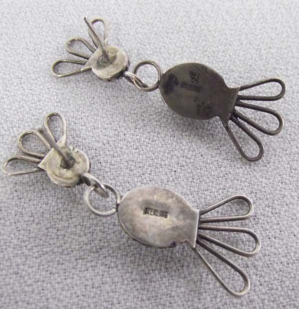 Sterling Rhinestones Bracelet Pair Native American Navajo Earrings. Lovely modern bracelet of sterling silver with rinestones, measures 7''x1/8''. The clasp has a double lock and is stamped, ''925.'' The earrings are sterling silver with turquoise cabochons. They measures 1-7/8''Lx5/8''W.