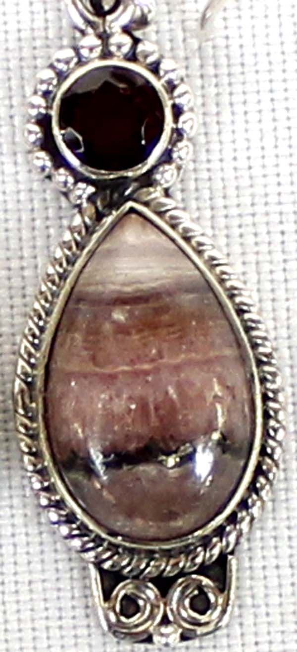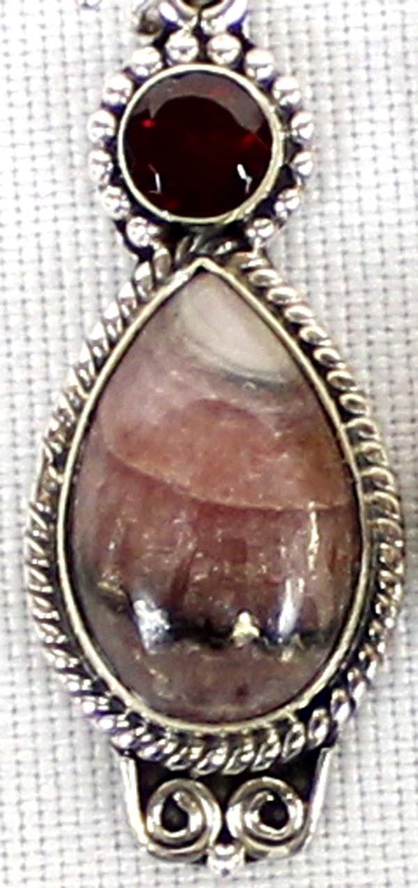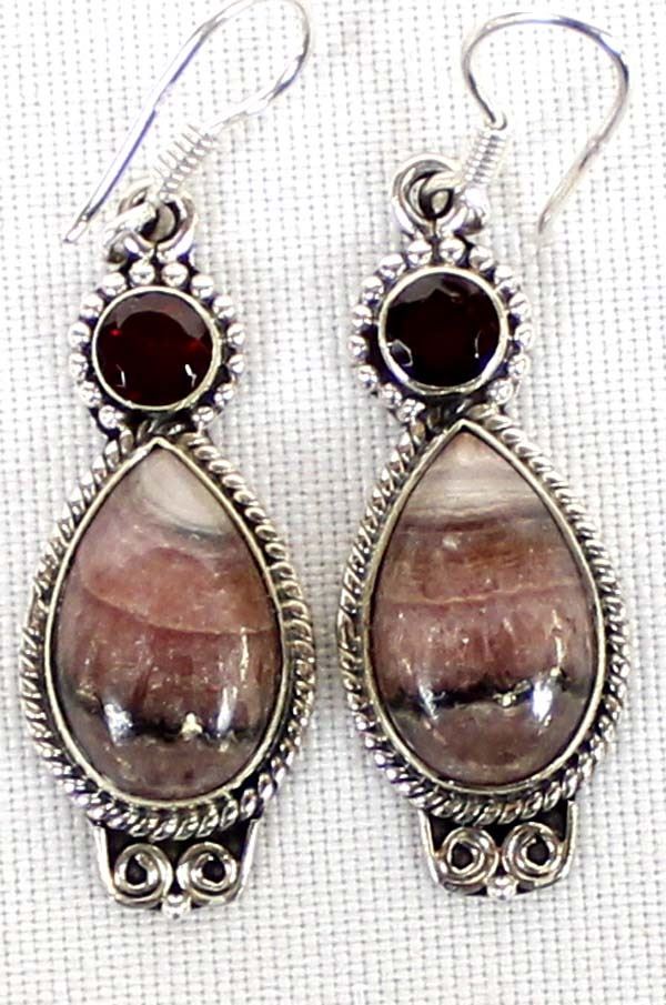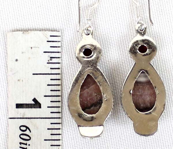 Sterling Rhodochrosite & Garnet Earrings, measure 1 7/8'' which includes the wire and are marked .925