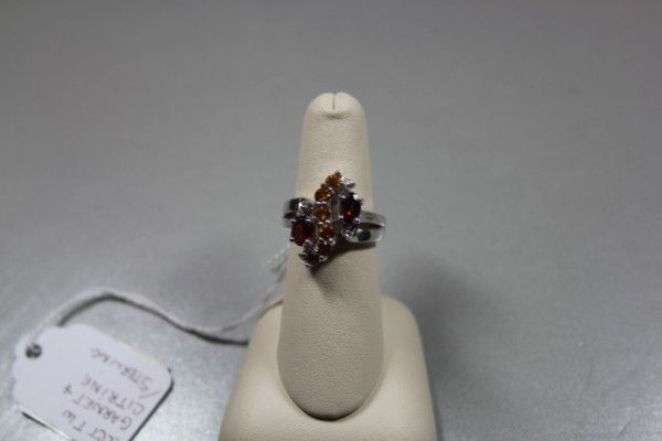 Sterling Ring w/Garnets & Citrine, Two Carats TW Size 7.5