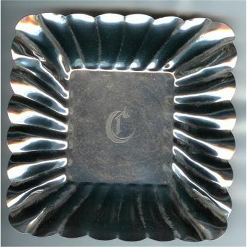 6" Square. Fluted. Marked "Sterling" "201" Circa 1930. "C" Monogram.