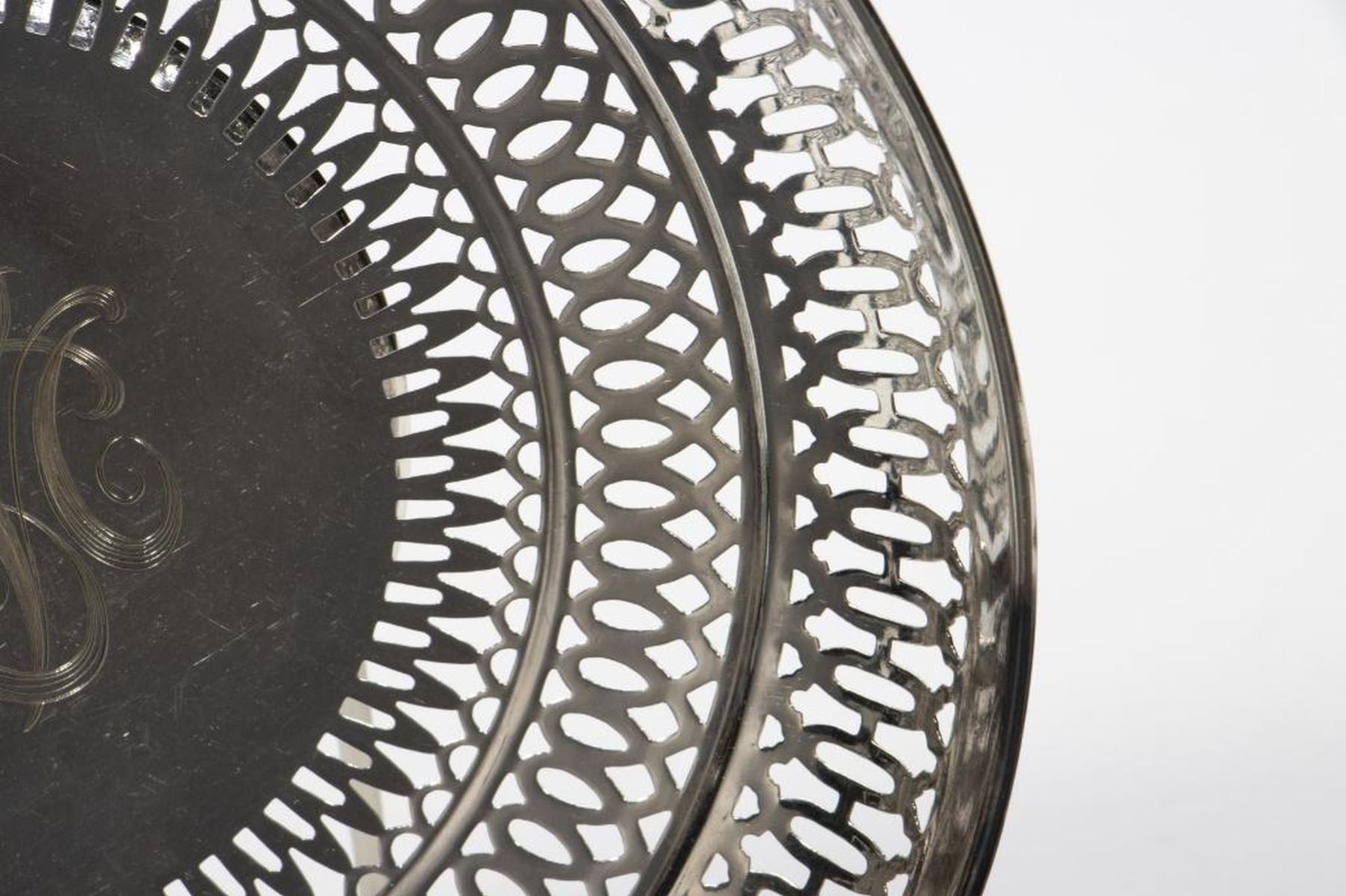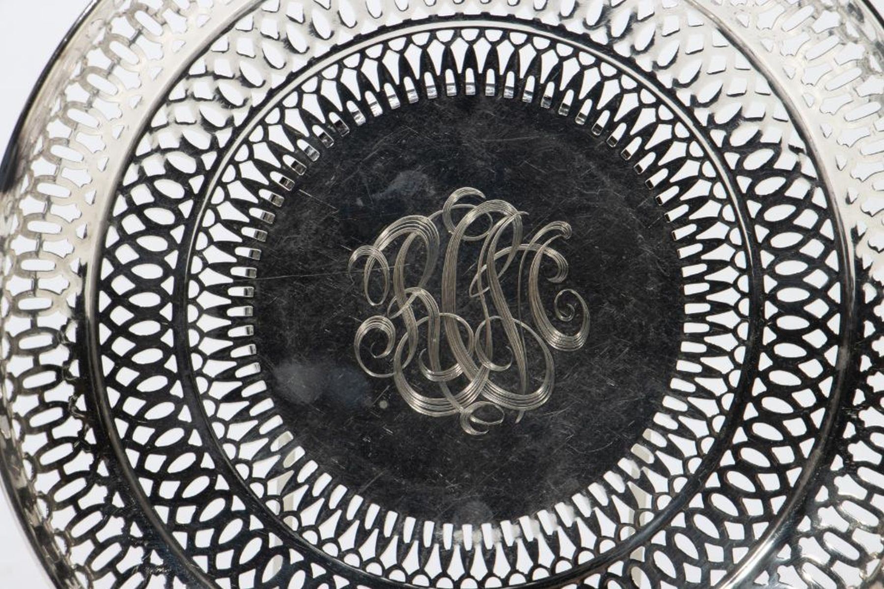 A lot of two, each of pierced Neoclassical design. Monogrammed. Greatest diameter 9 1/2in. Total weight 444 grams