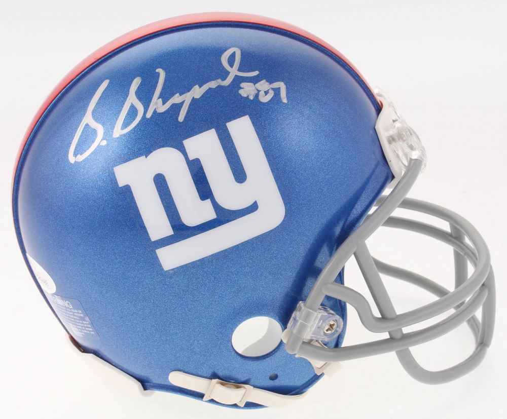 New York Giants mini helmet. Hand-signed in silver paint pen by Sterling Shepard.