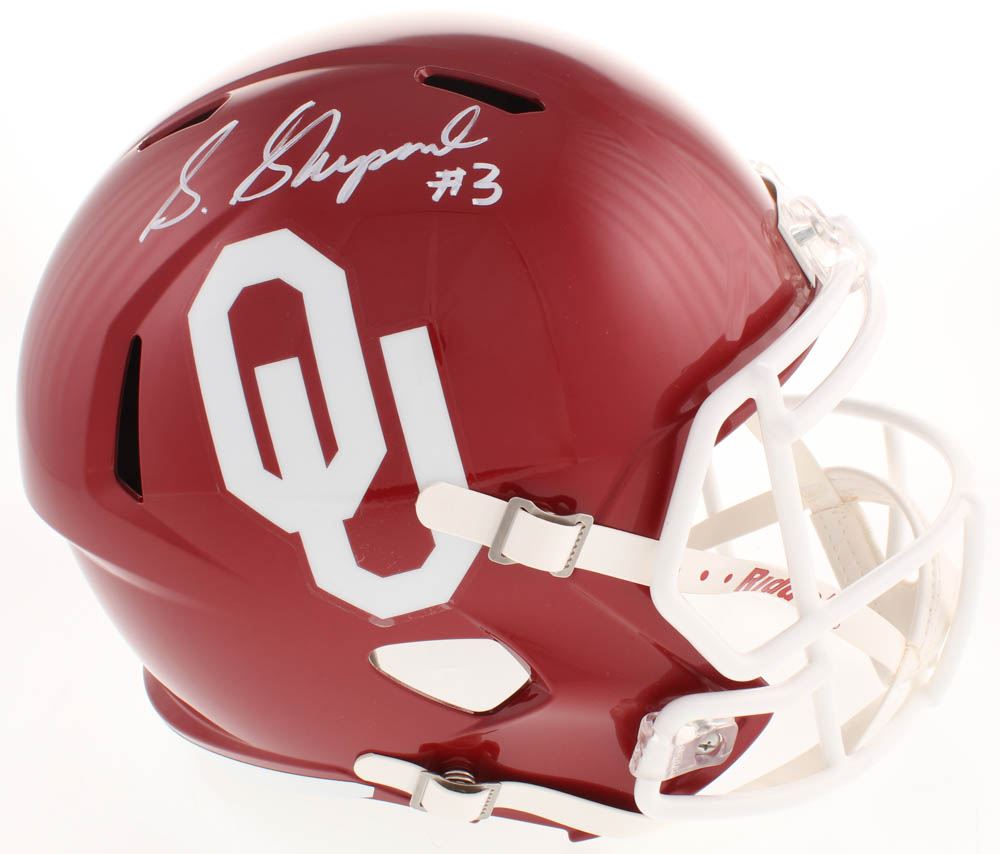 Riddell Oklahoma Sooners full-size replica speed helmet. Hand-signed in white paint pen by Sterling Shepard.