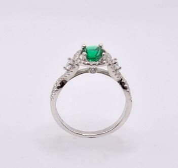 The 6.0mm Lab-Grown Emerald is Mounted in 925 Stamped Solid Sterling Silver with White Gold Overlay, which gives the Ring its High Polish and Shine.