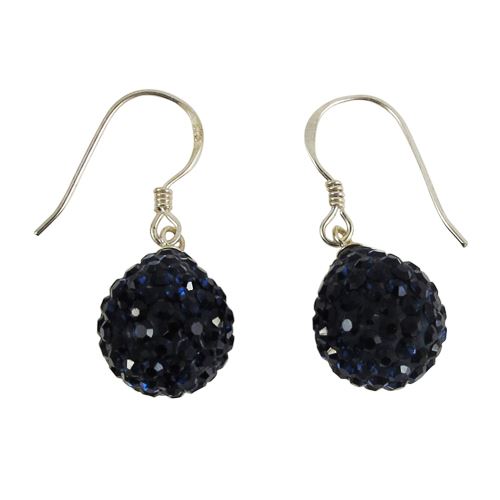 Sterling Silver 10X14mm Navy Crystal Teardrop Wire Earrings