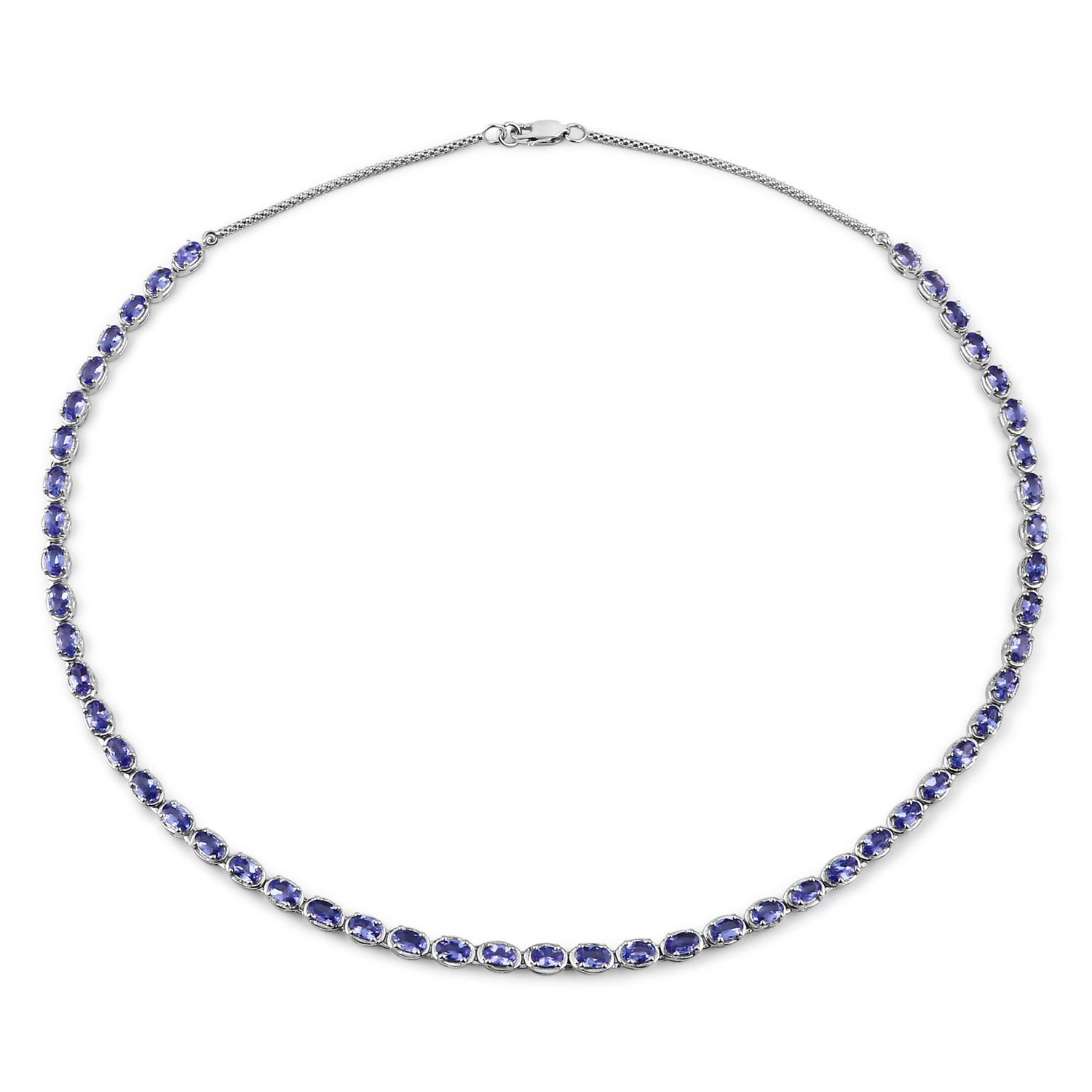One Sterling Silver 10ct Tanzanite Necklace. (53) tanzanite stones with a total weight of 10cts. Total length of this necklace is 18 inches.