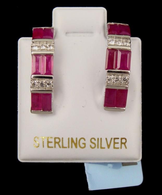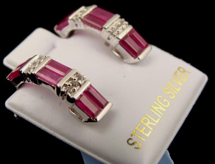 Offered here is a .15 carats, 12 piece white sapphire earrings. The earrings are made out sterling silver, weighs 3.00 grams and contains 12 pieces of 2.30 carats of ruby.
