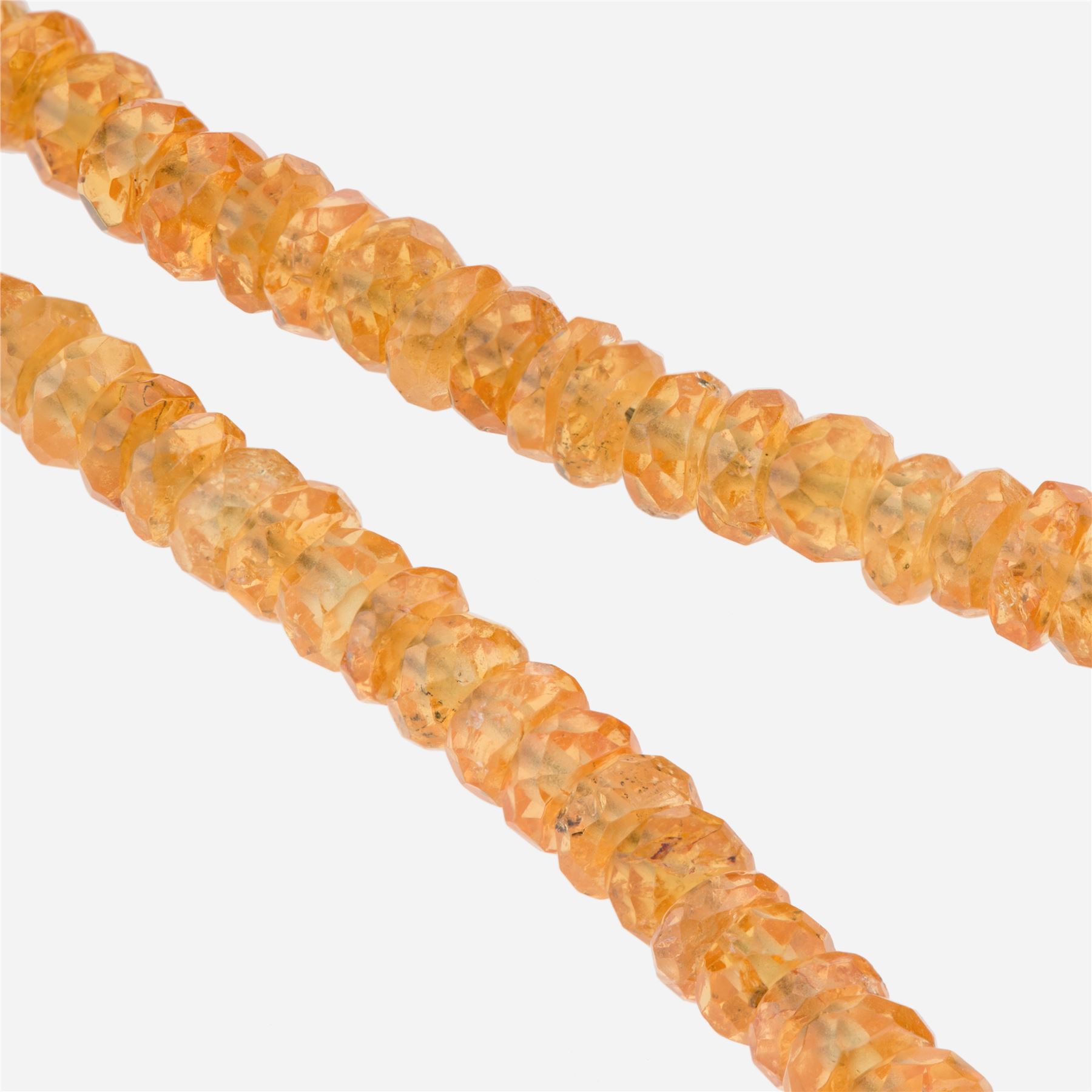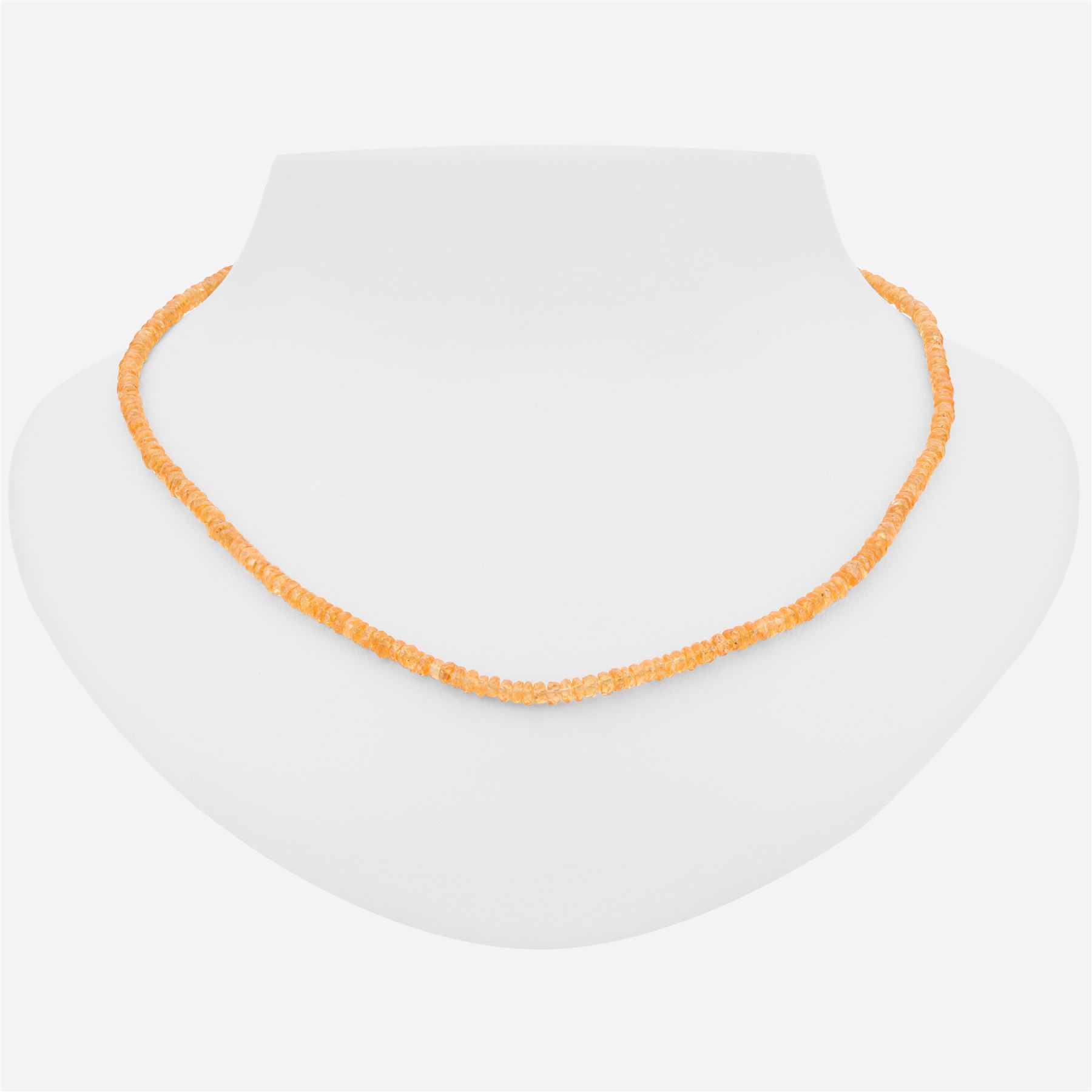 Tara Mesa crafts a truly impressive design with this 18” necklace. Sunshine-bright hand selected spessartite beads are beautifully complemented by a gleaming sterling silver lobster style clasp to create a necklace that will brighten even the grayest day.