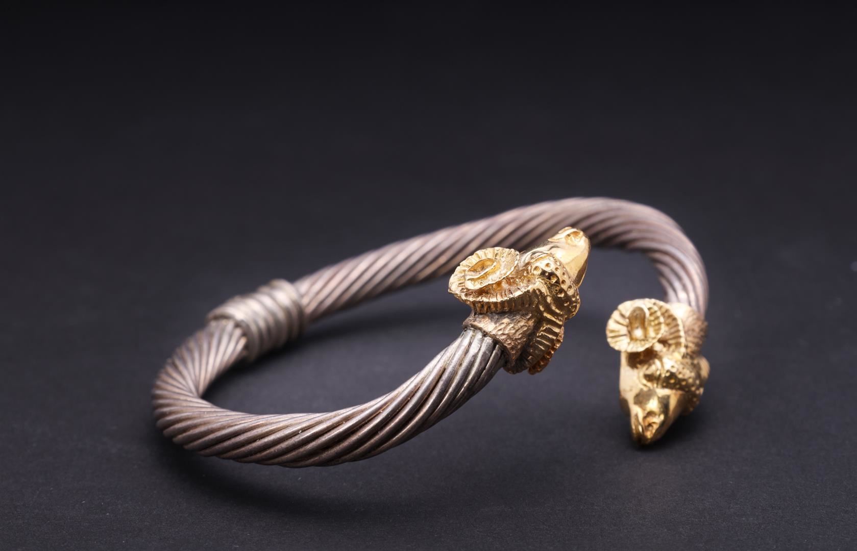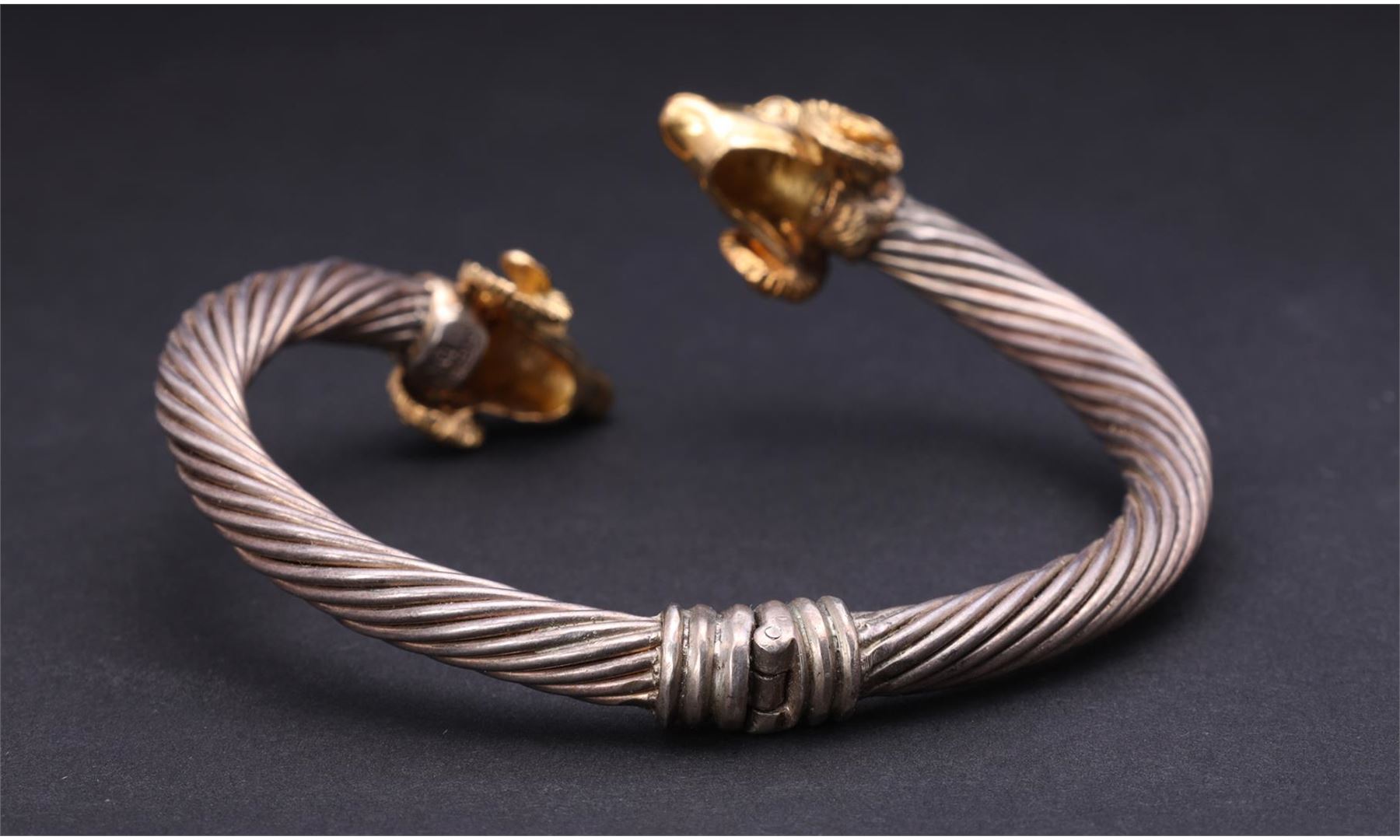 Sterling Silver & 18K Yellow Gold Crossover Bracelet by Ricardi. Total weight 31 gm. Estimated retail value $900.