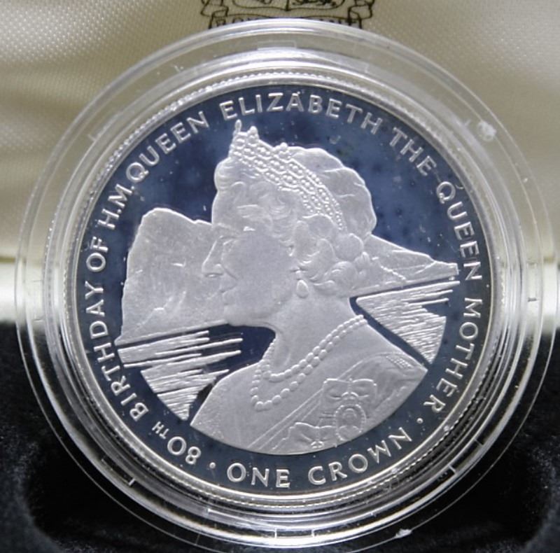 Sterling Silver 1980 Commemorative Crown; Proof Crown Commemorating Queen Elizabeth, The Queen Mother on her 80th Birthday, 28 grams in weight