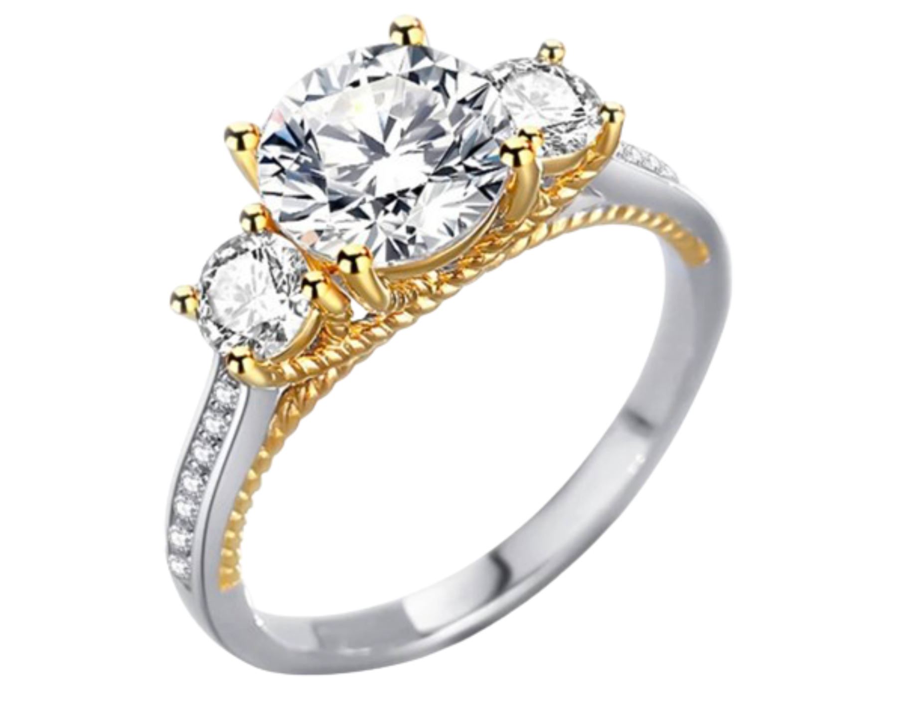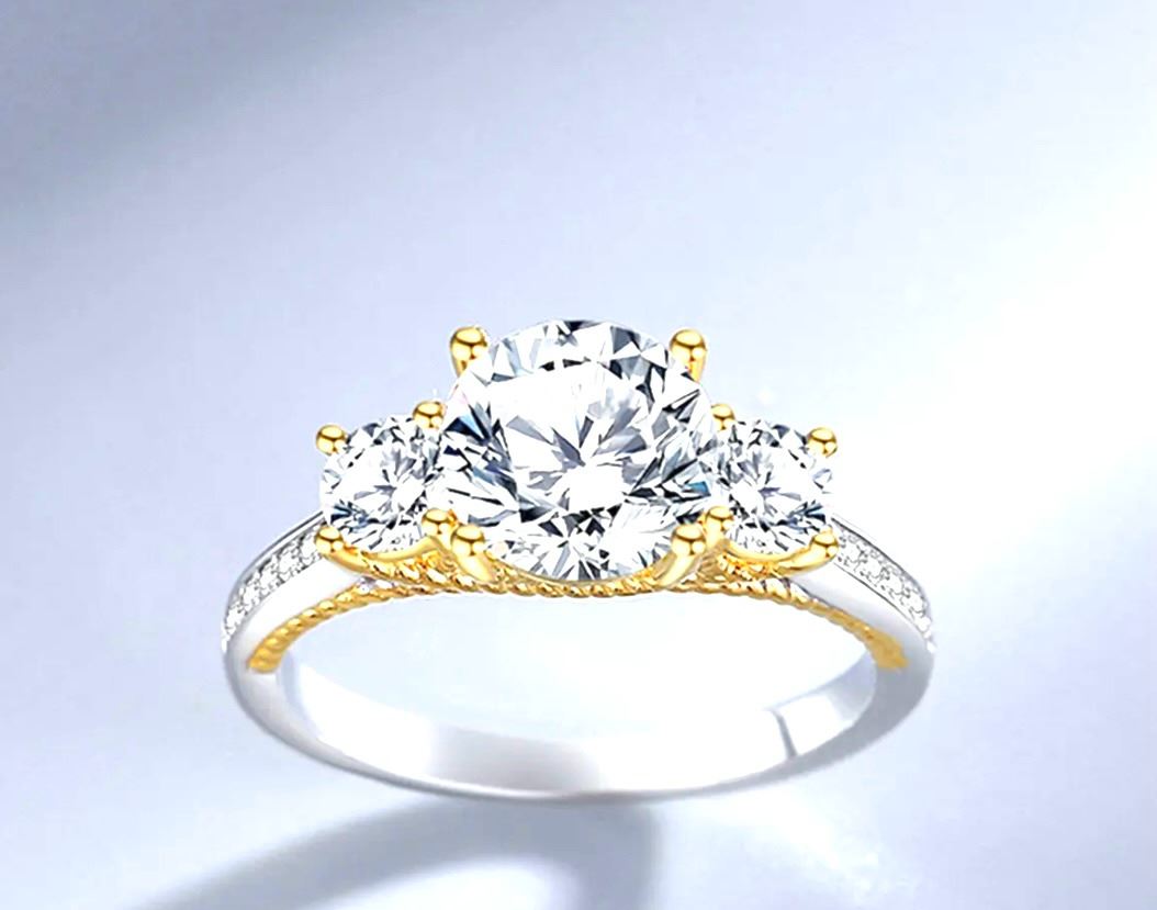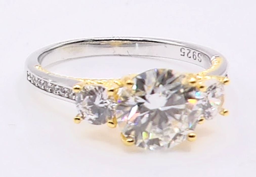 Charming New SMARTLIFE Sterling Silver 2.0ct Moissanite Diamond Trinity Ring with Gold Accents