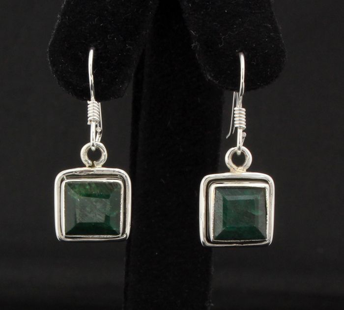 Sterling Silver 24.50ctw Emerald Beryl Earring **|**|** Petite Handmade Silver Earring with Natural Square Shape Emerald Gemstone size: 9.30x9.30mm; color: Green; Stone Family: Beryl ; MSRP: $300
