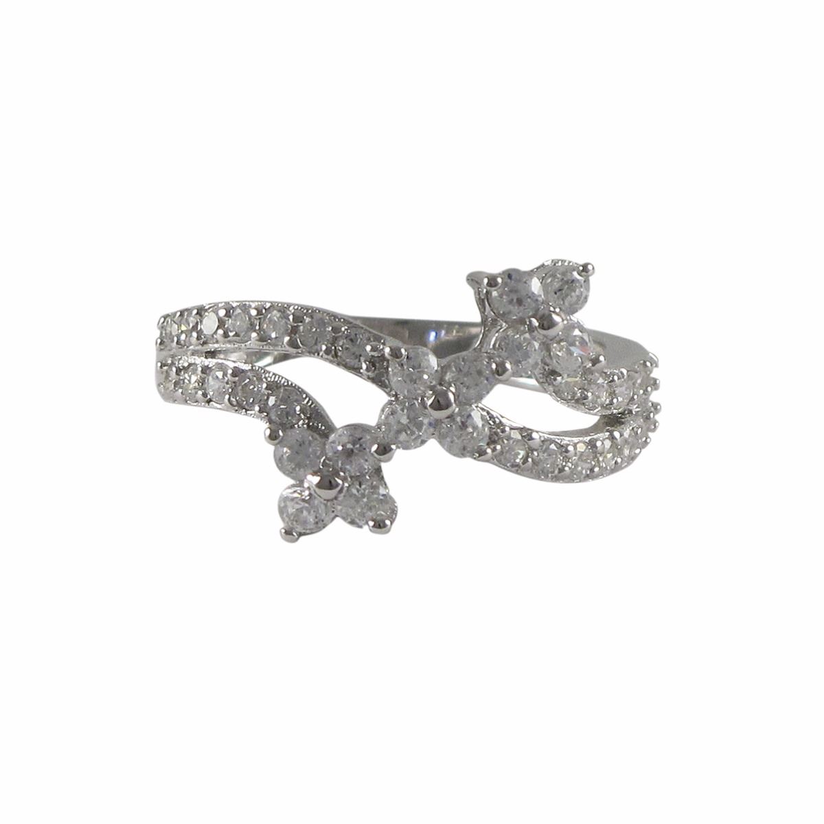 Sterling Silver 3 Flower Ring With White Czs, Size 6