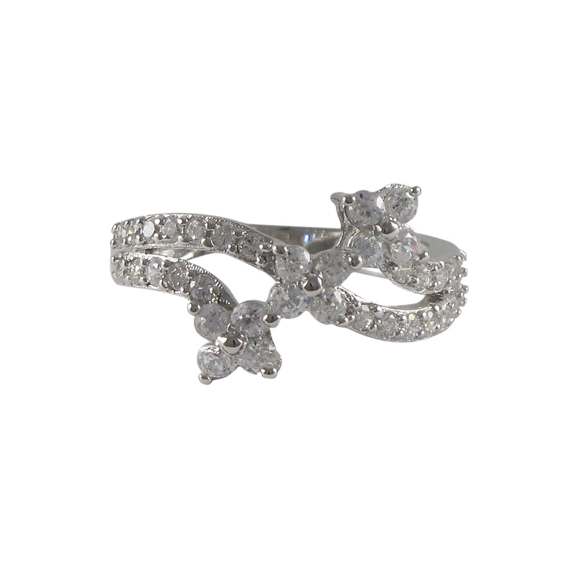 Sterling Silver 3 Flower Ring With White Czs, Size 8
