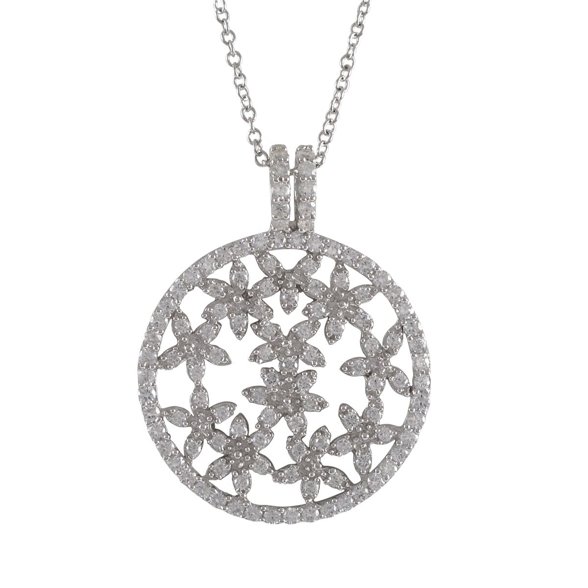 Sterling Silver 30Mm Circle Pendant Flower Design With CZ- 1.61&Quot;