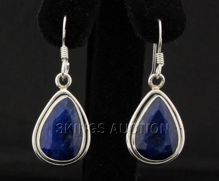 Sterling Silver 37.00ctw CorrundumSapphireEarring **|**|** Pear Shape Sapphire Gemstone Handmade set in Sterling Silver Dangling Earring size: 16.35x11.74mm; color: Blue; Stone Family: Corrundum ; MSRP: $400